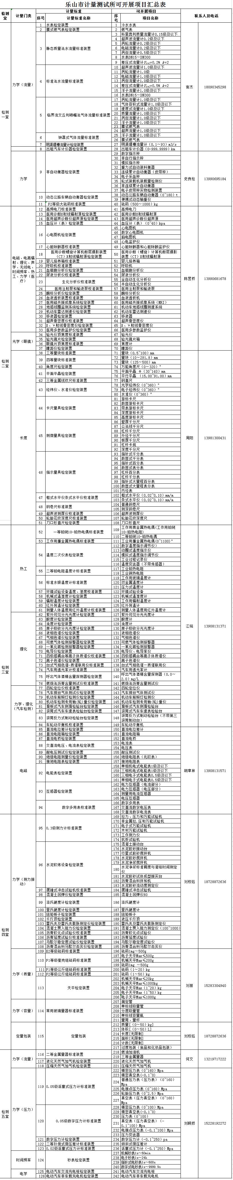 乐山市计量测试所可开展项目汇总表.xlsx