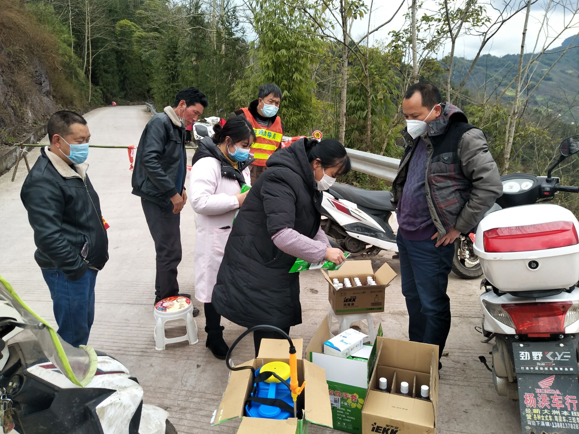 自新型冠状病毒肺炎疫情爆发以来,龚学平带领驻村工作队第一时间与帮扶村联系,在了解到村上防疫物资缺乏的情况下,经多方筹集,将首批防疫物资—医用口罩140个,KN90口罩100个,电子测温仪(枪)2把,消毒液2箱,电子喷雾器1套,一次性手套5000双,帐篷1个—送到村防控人员手中。为了避免村内外人员的窜动,龚学平带领驻村工作队在出入村的路口设立执勤监测点,实行24小时轮流值班守岗。同时,驻村工作队全面落实联防联控措施,积极协助镇村党委,以上门宣讲、走访摸排等形式,向群众宣传疫情防控知识、防控政策措施等,并详细了解疫情以来村民生产生活、疫情防控、村民安抚及值守人员安全防护等情况,引导群众积极做好安全防护措施并树立起战胜疫情的信心。