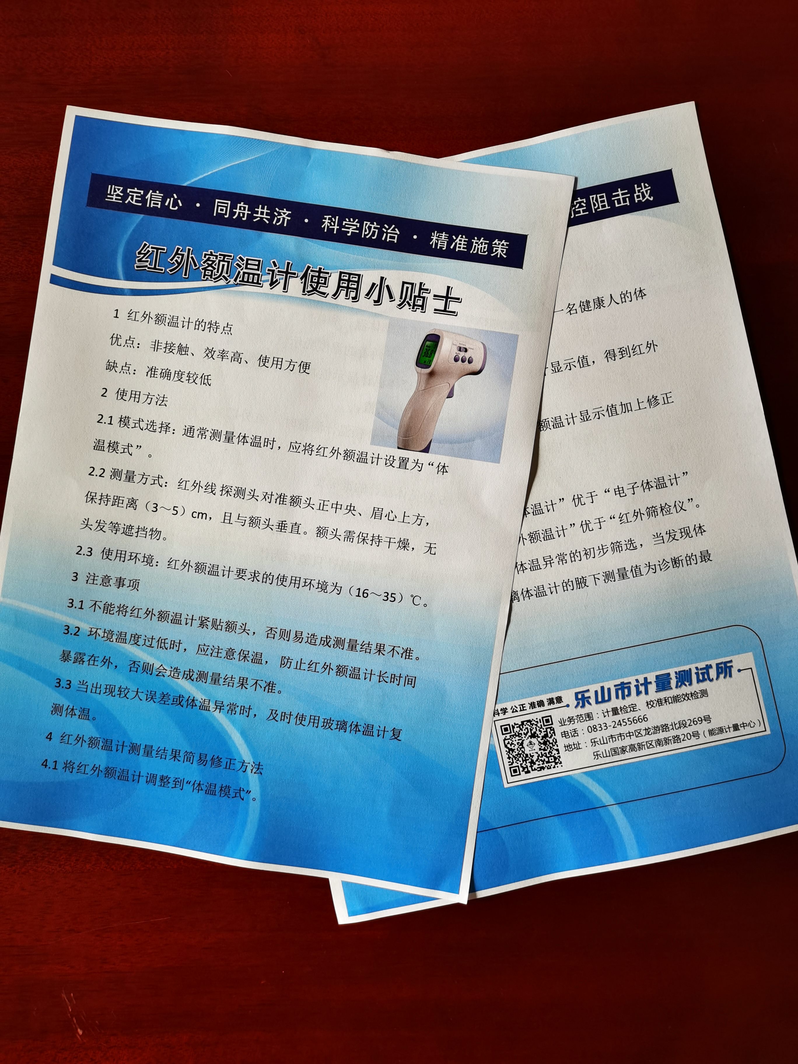 在现场,技术人员用核查标准进行比对筛查的同时,并向使用人员发放“红外额温计使用小贴士”宣传资料,指导他们如何正确测量额温、如何进行示值修正、如何进行自我核查以及使用注意事项等。