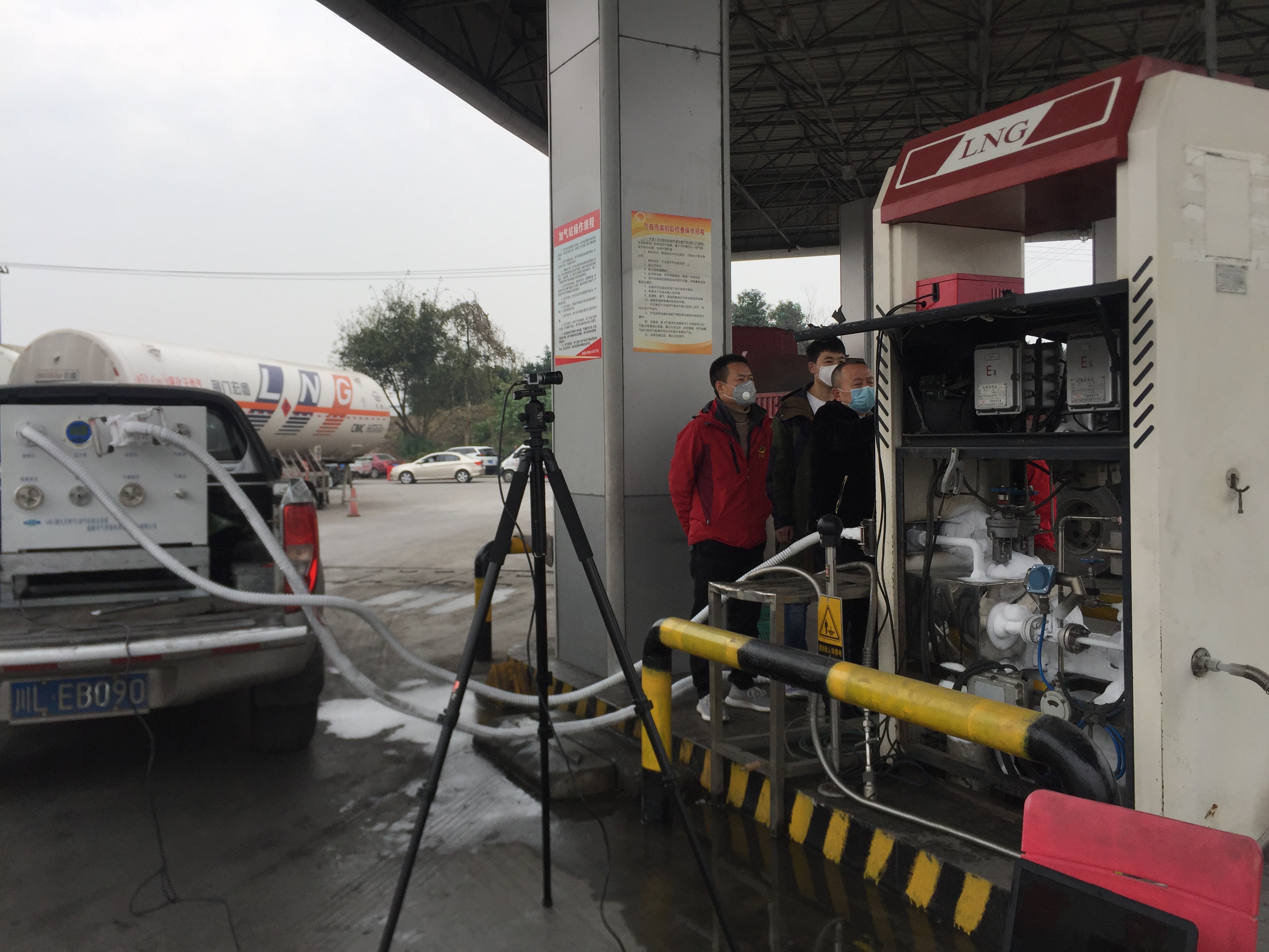 为确保燃气销售计量准确,营造新冠肺炎疫情防控期间加油站诚信经营的市场氛围,切实维护消费者的合法权益,从3月3日—12日,乐山市计量测试组织检定人员对市中区、峨眉山市和马边县的10个LNG加气站开展了计量专项检查和周期检定工作,共计检定LNG加气机28台,其它在用的压力表、压力变送器、报警器、温度变送器等计量器具308台/件。此次工作,检定人员严格按照JJG1114-2015《液化天然气加气机》要求,重点检查了各加气站在用LNG加气机的计量性能、计量器具检定证书是否在有效期内、各部位铅封是否完好等情况进行了严格检查,对加气机的基本误差、重复性进行了计量检定和调试。经查,加气站在用加气机计量性能总体状况较好,未发现破坏加气机铅封、擅自改动或拆装加气机等计量违法行为,辖区内LNG加气站计量秩序正规。