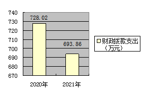 2021年财政拨款收、支总计693.86万元。与2020年相比,财政拨款收、支总计各减少34.16万元,下降5%。主要变动原因是财政拨款减少。